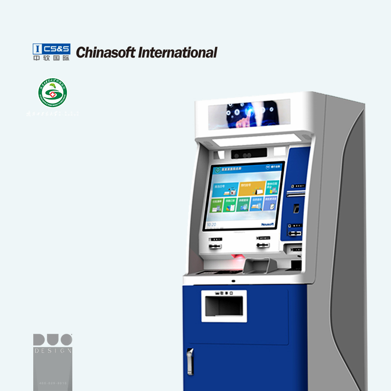 医院一站式自助服务机 为中软国际 设计自助服务机 自助挂号机是用于医院的自助服务设备,主要是针对我国大型医院排队挂号队伍长,等待时间久,同时造成医院拥挤堵塞的现状而设计,通过结合触摸屏等硬件技术并与医院现有信息系统(HIS)实现对接可以满足病人对于医院的自助挂号、自助预约、自助充值、收费项目信息查询等需求,还能帮助医院优化业务流程,提升医院日常营运效率和服务质量,有效缓解排队问题、改善患者体验。 成都工业设计团队完成,并提供后续展示相关设计服务。