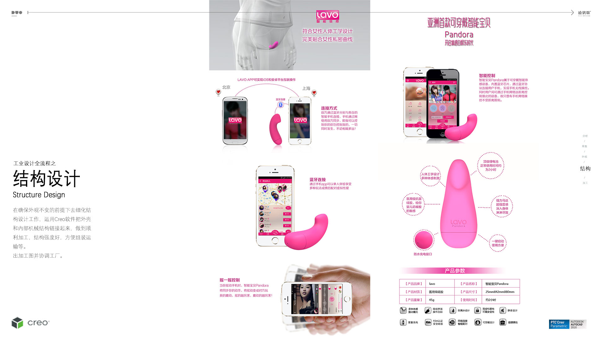 pandora+APP高科技套餐成异地分居相思“终结者”。 1、便携性。 扁平小巧,可爱玲珑。 2、可穿戴。符合女性人体工学设计,**贴合女性私密曲线。 3、智能。pandora属于可穿戴智能体感设备,内置蓝牙芯片,通过蓝牙协议连接用户手机,实现手机无线操控。同时用户间可通过手机网络远距离控制彼此的设备,故只要有手机网络,操控不受距离限制。 4、私密性。超静音高效马达,是你在他人不经意间享受**。 5、安全性。防过敏医用硅胶材质,使用贴心、舒心、放心。 6、**体验。通过app可以实现多种单人及多人交互式体验及玩法,并可以和情侣实现在线虚拟性/爱。