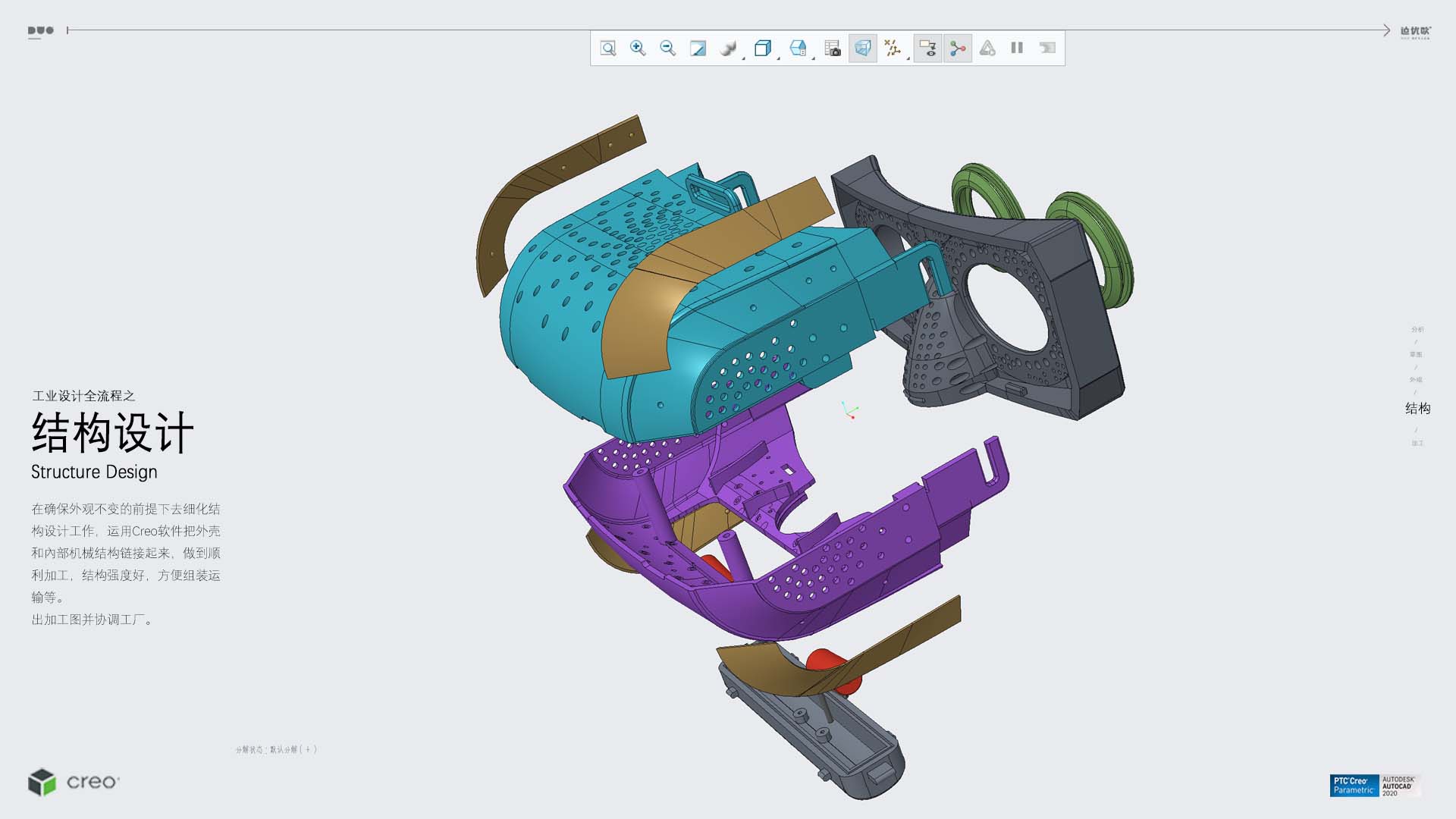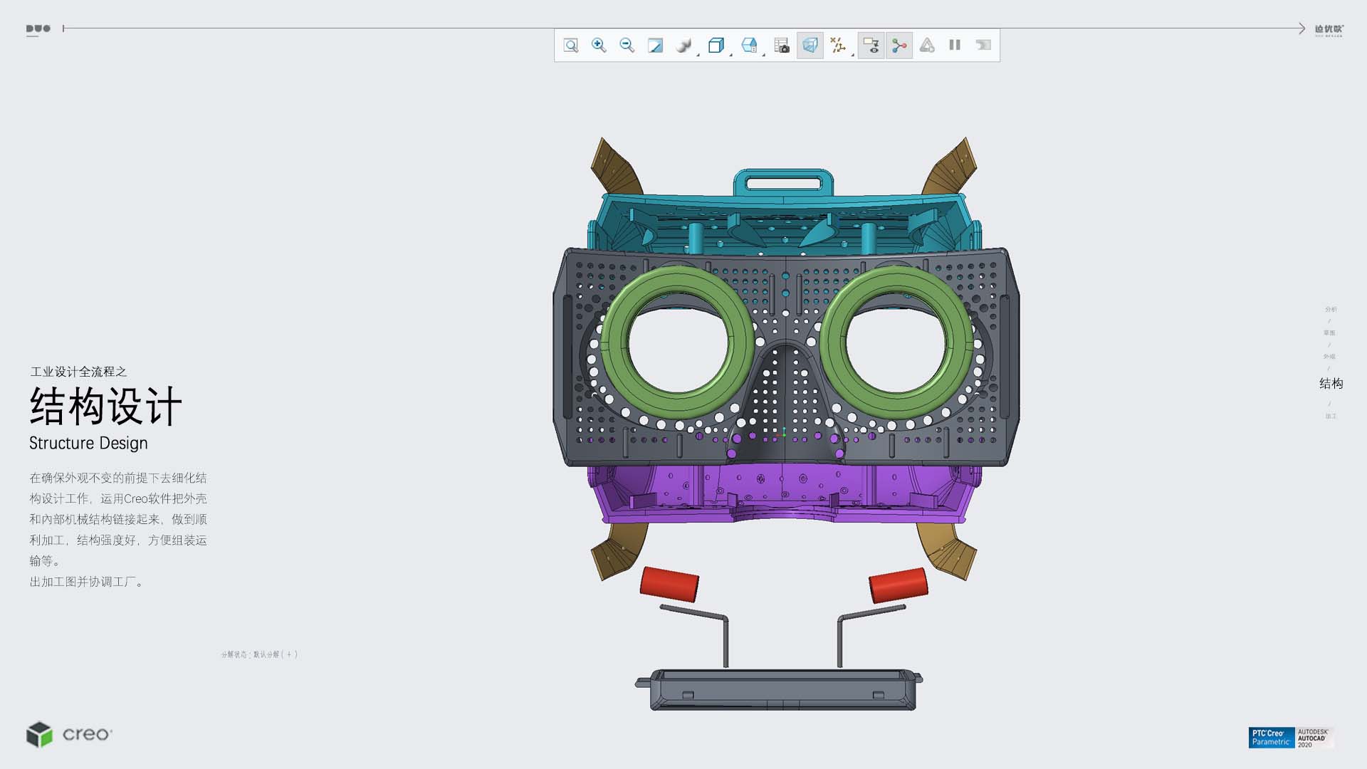 护眼仪外壳发明人曾是火箭军工程大学教授,外观设计根据热流力学,人体力学的原理。它的弧度使热气循环时刚好可以循环到眼周的几个孔里,在斜靠120度时候药刚好可以直接刺激到眼部穴位,达到最佳效果。核桃壳在专用的药茶浸泡两个小时,药柱隔着核桃壳温灸,可以减缓药柱的辛散之性,让一部分的微热之性进入眼睛,另一部分通过刺激眼周的穴位来起作用。