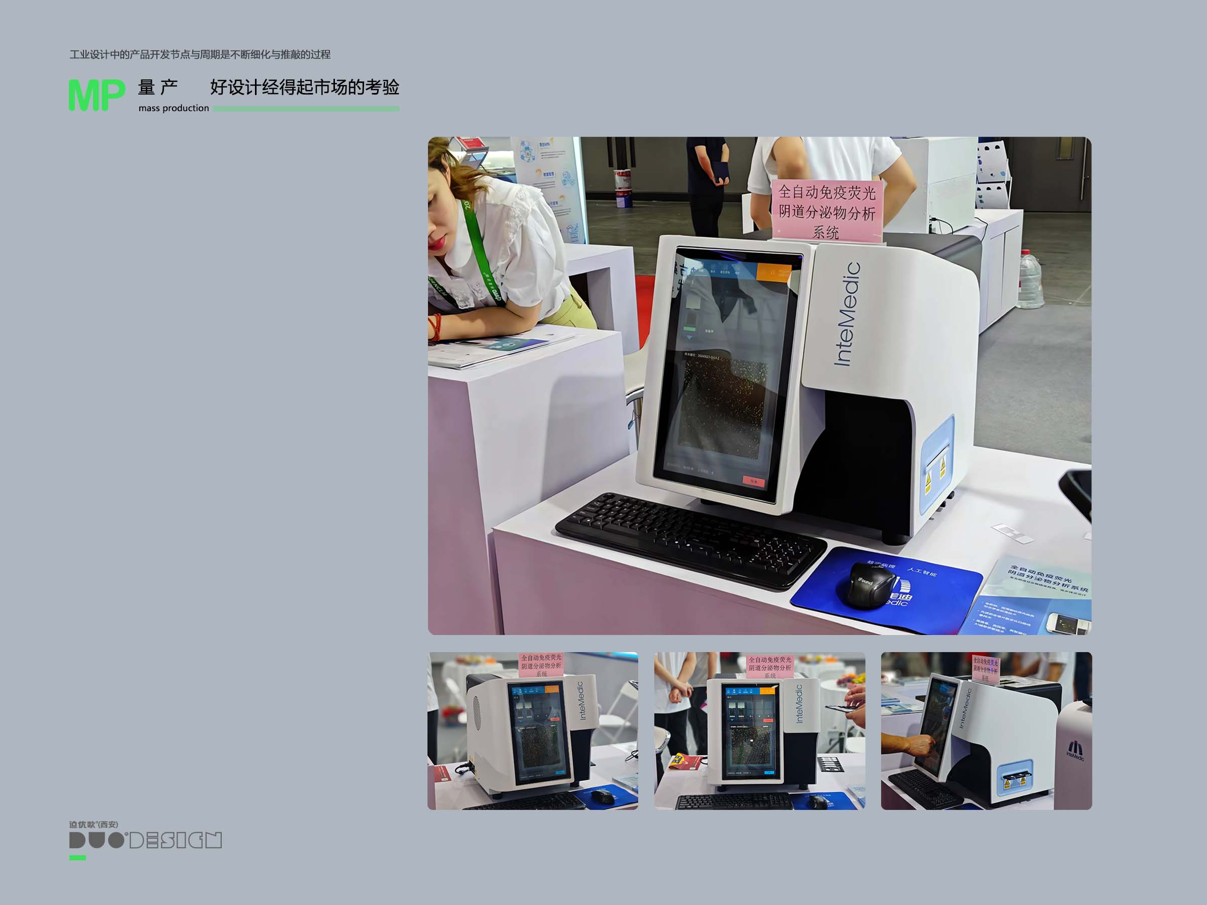 迪优欧(西安)工业设计公司为广州英特美迪科技有限公司设计的全自动免疫荧光阴道分泌物分析仪产品在NCLM2024检验医学大会展出,迎接来自世界各地的参观者。