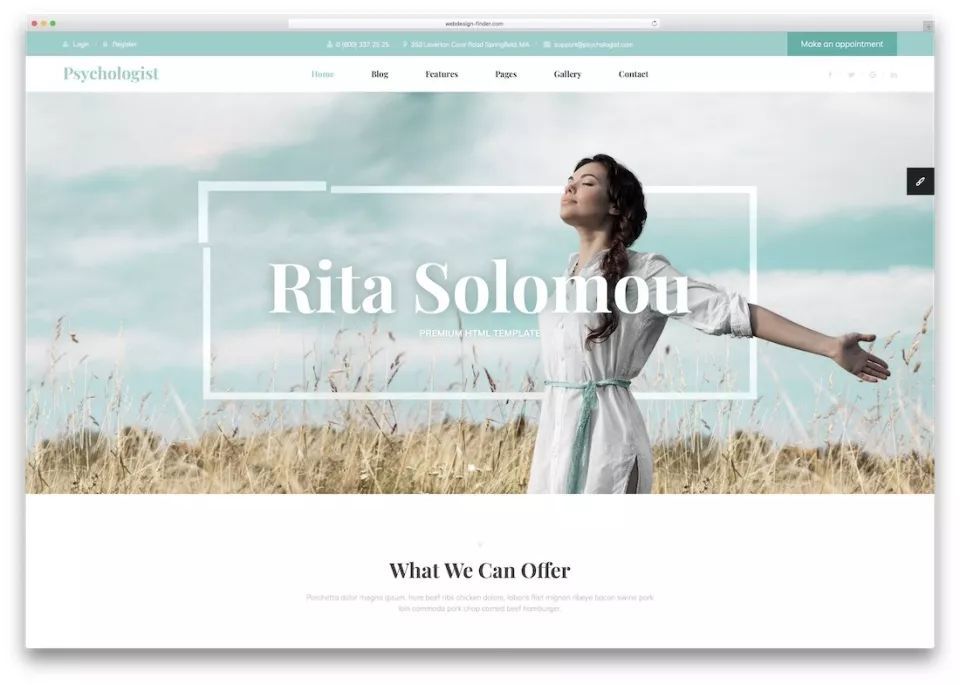 整体网页设计以淡绿色调为主,导航栏、字体、以及天空的颜色融为一体,是一个清新而又富有生命力的颜色。而网站响应能力和卓越性能是促成转化的一部分。作为心理健康类网页设计的模板,也可以给新手提供一个很好的参考。