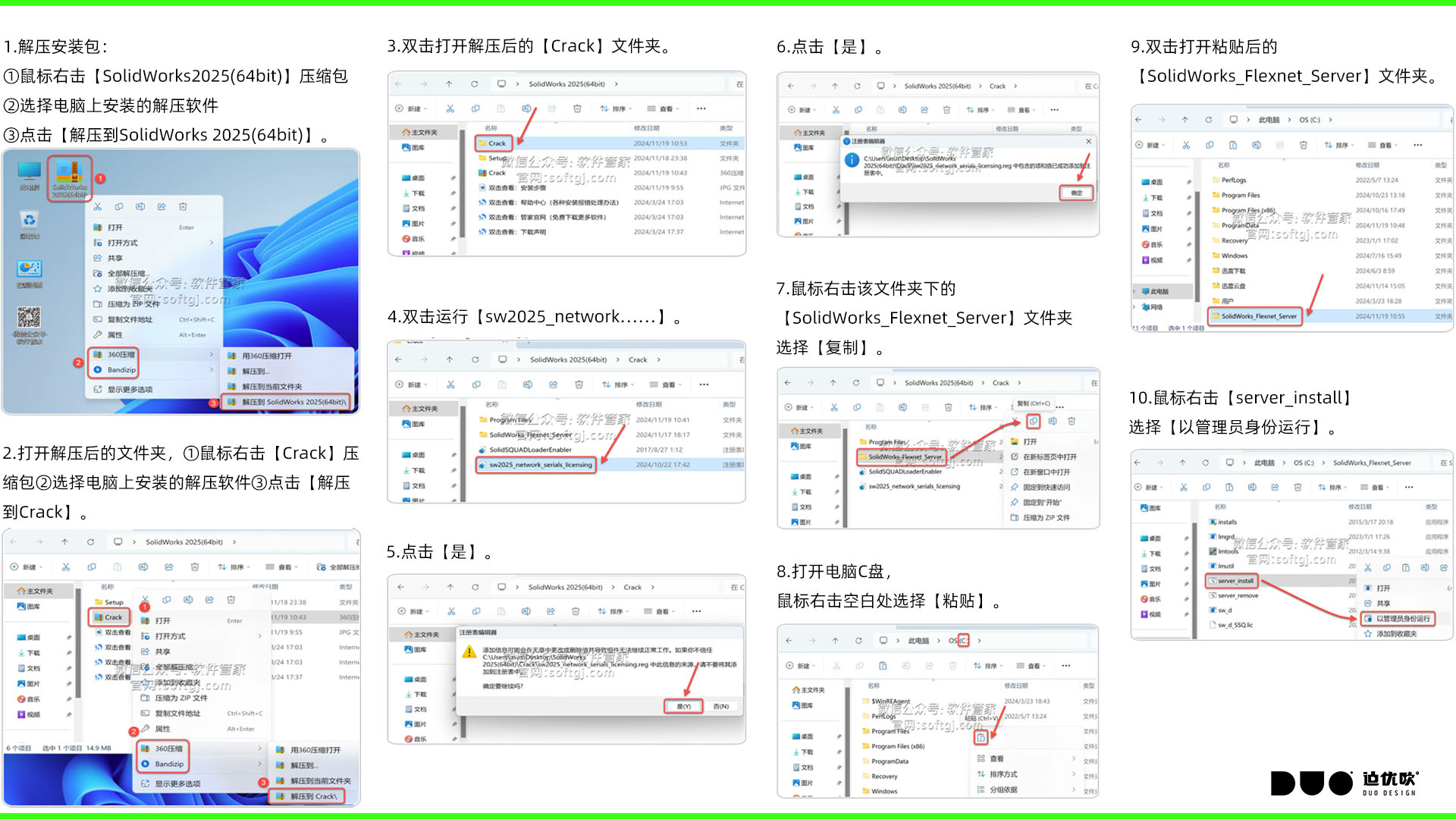 1.解压安装包:①鼠标右击【SolidWorks2025(64bit)】压缩包②选择电脑上安装的解压软件③点击【解压到SolidWorks 2025(64bit)】。